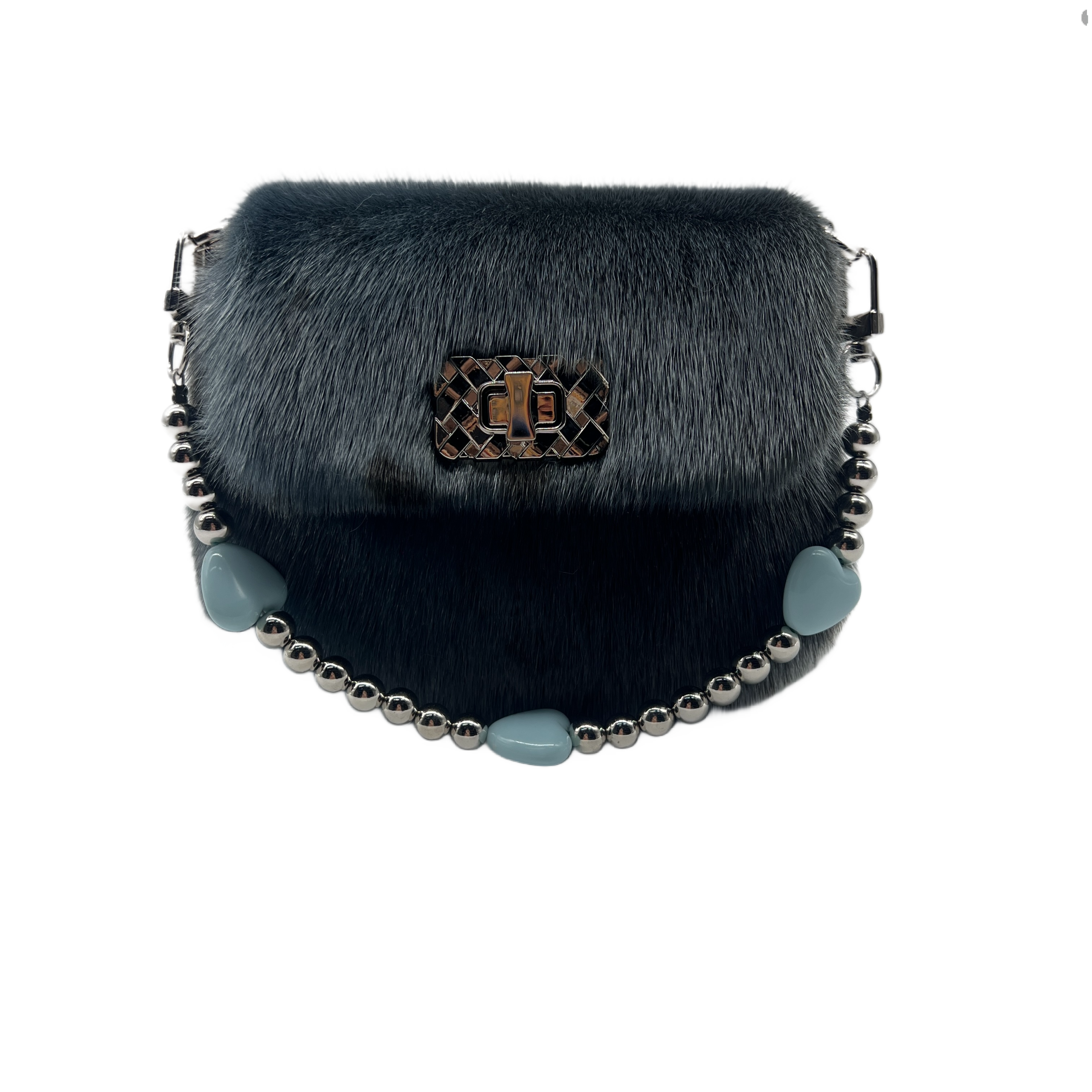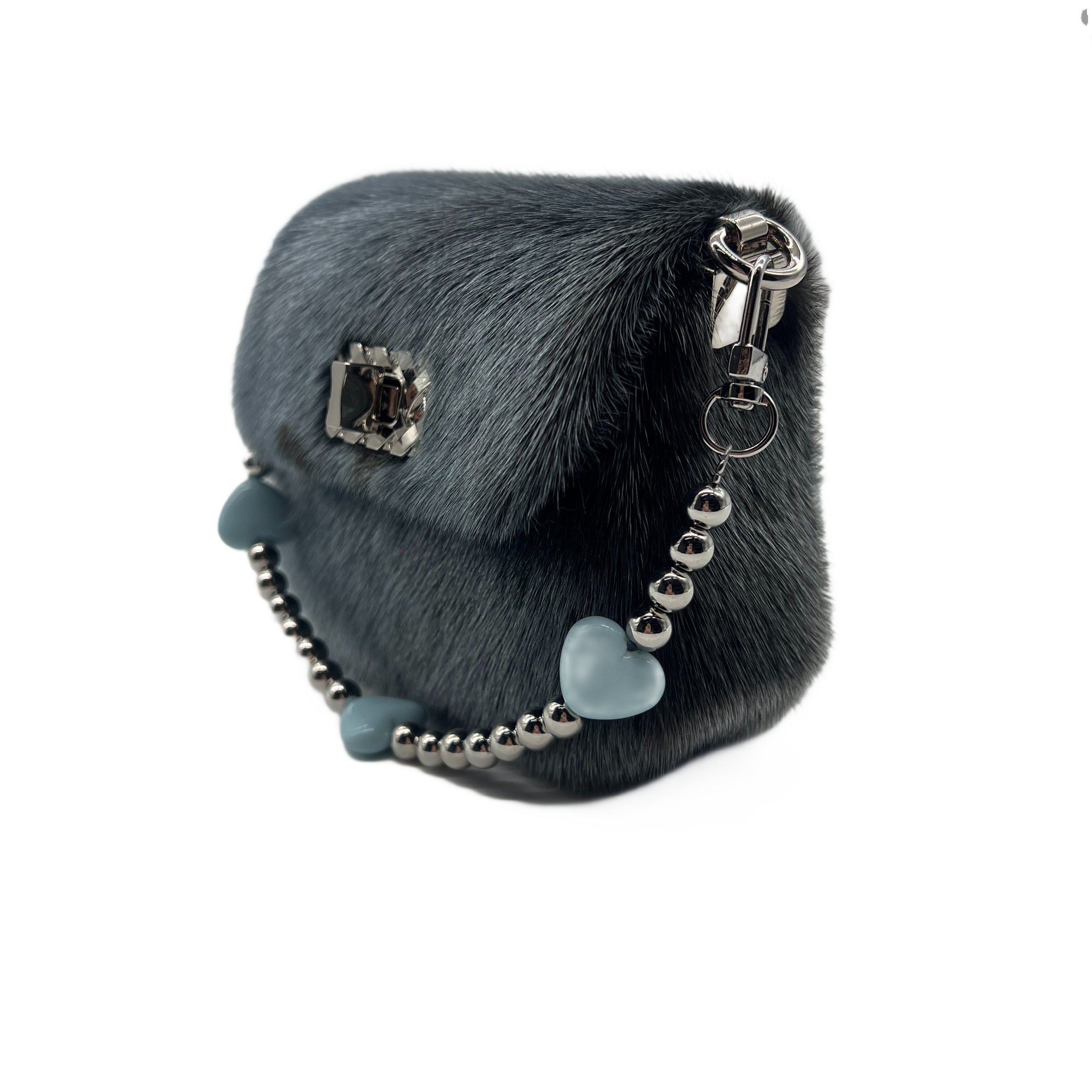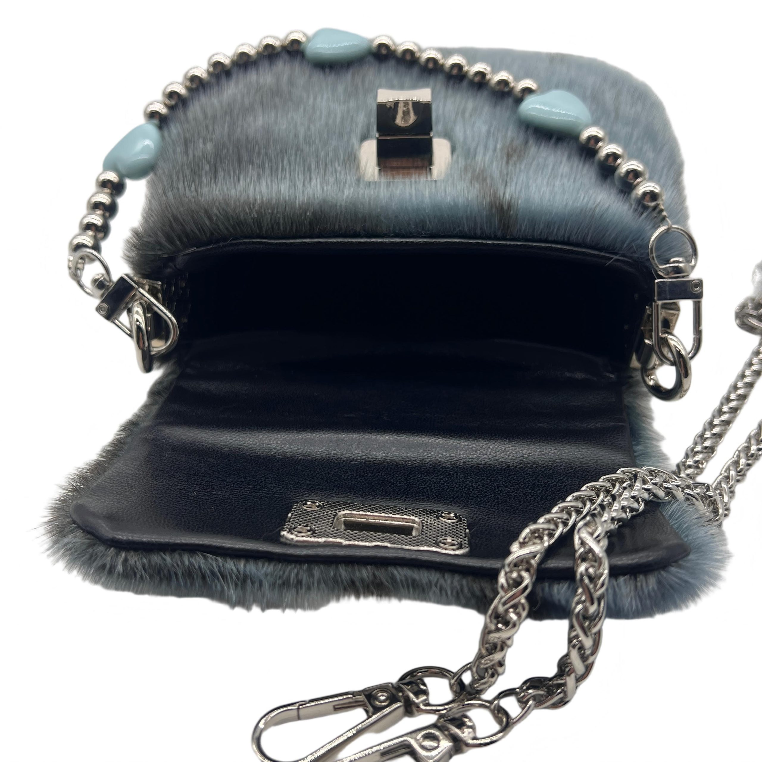 Color: Blue-gray Material: Faux fur/Plush Dimensions: 15*10*6cm Shoulder strap: Yes