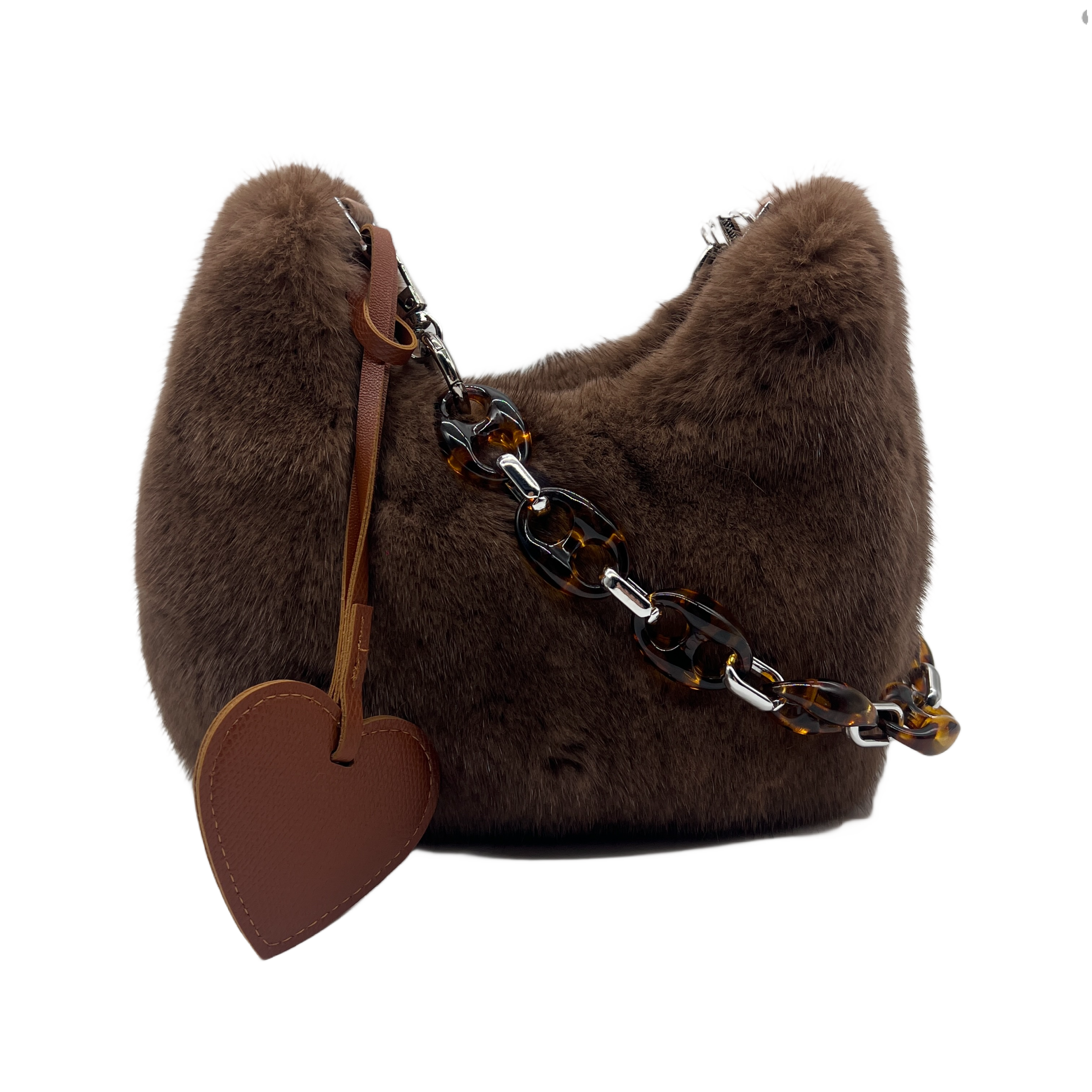Color: Dark Brown Material: Faux Fur/Plush Dimensions: 22*18*10cm Shoulder Strap: Included