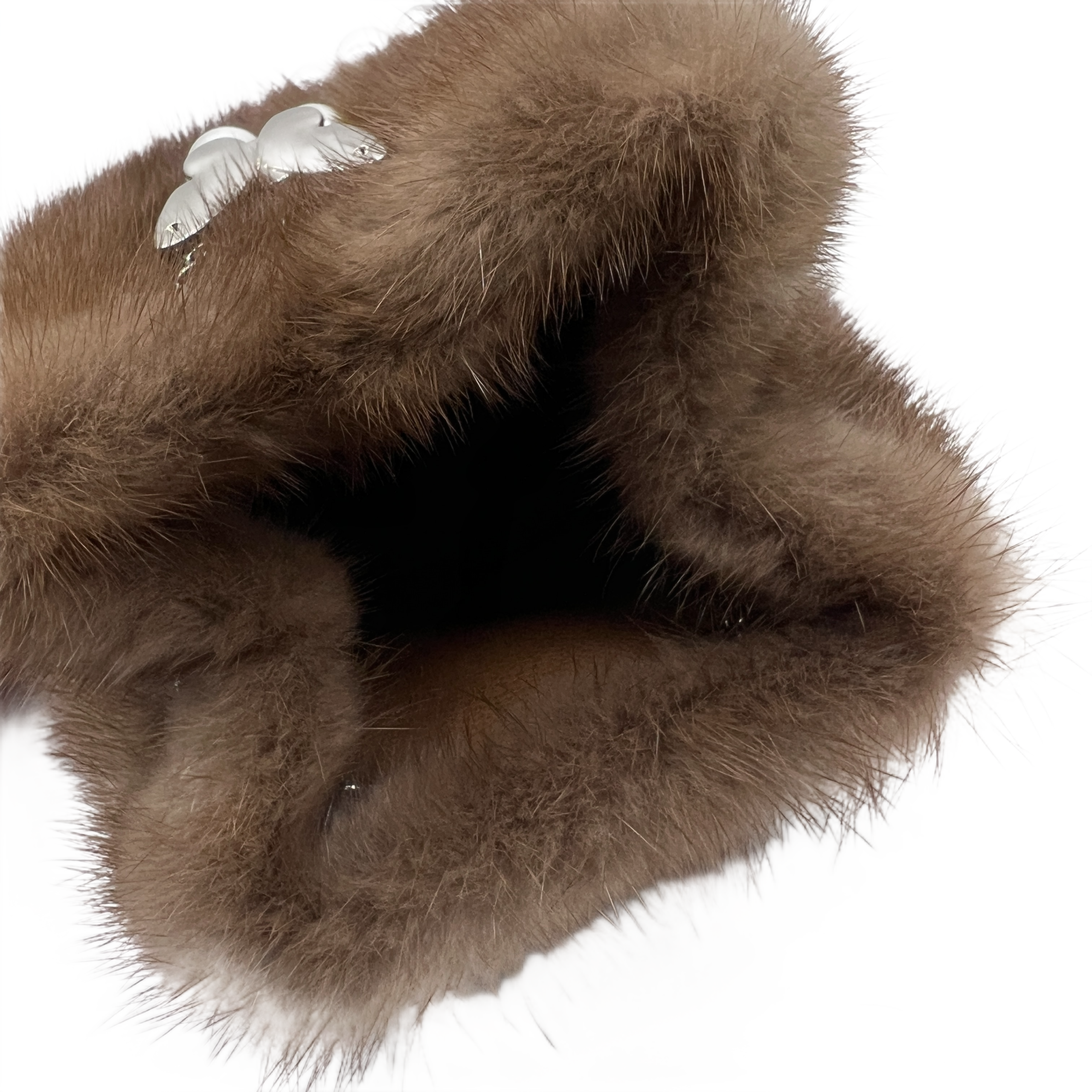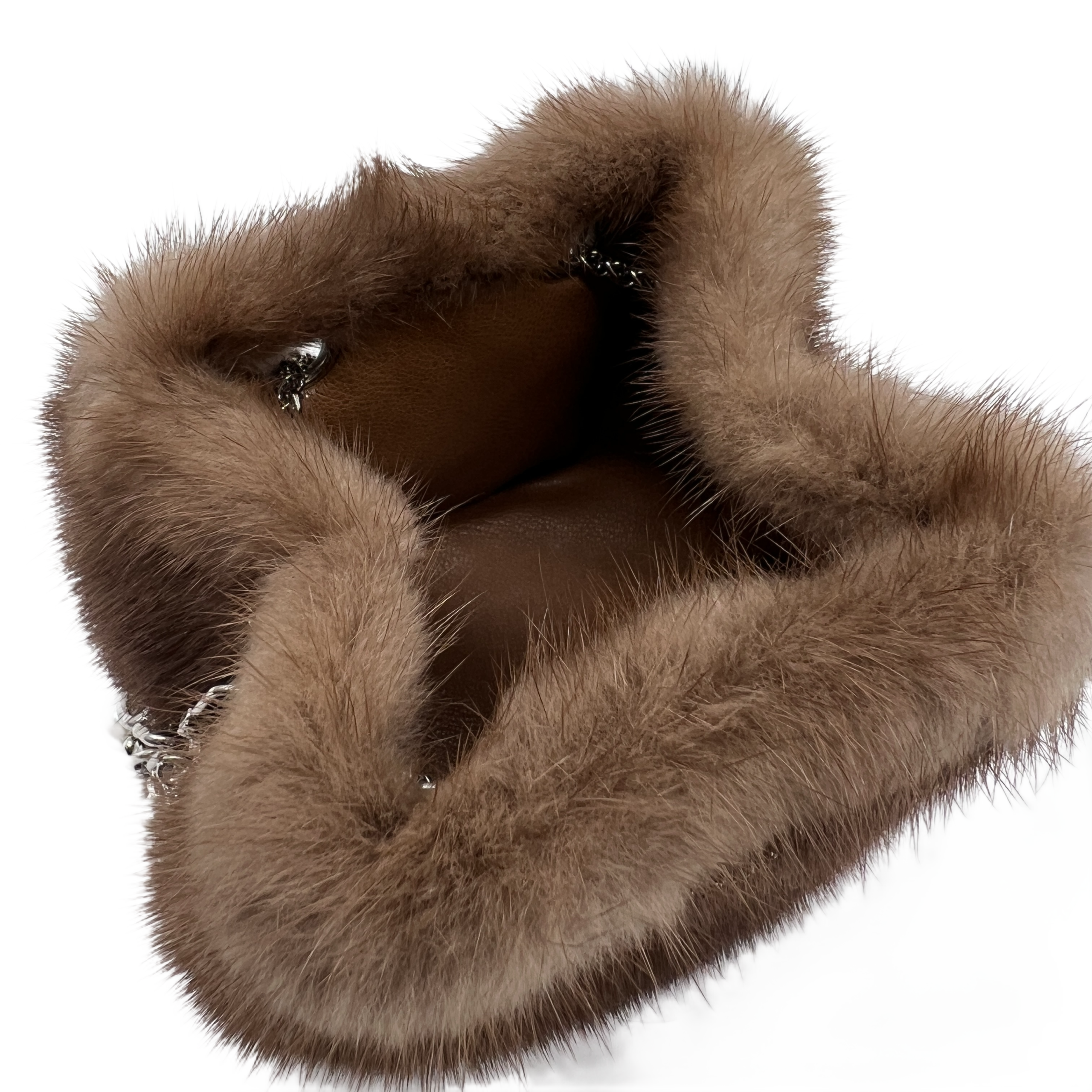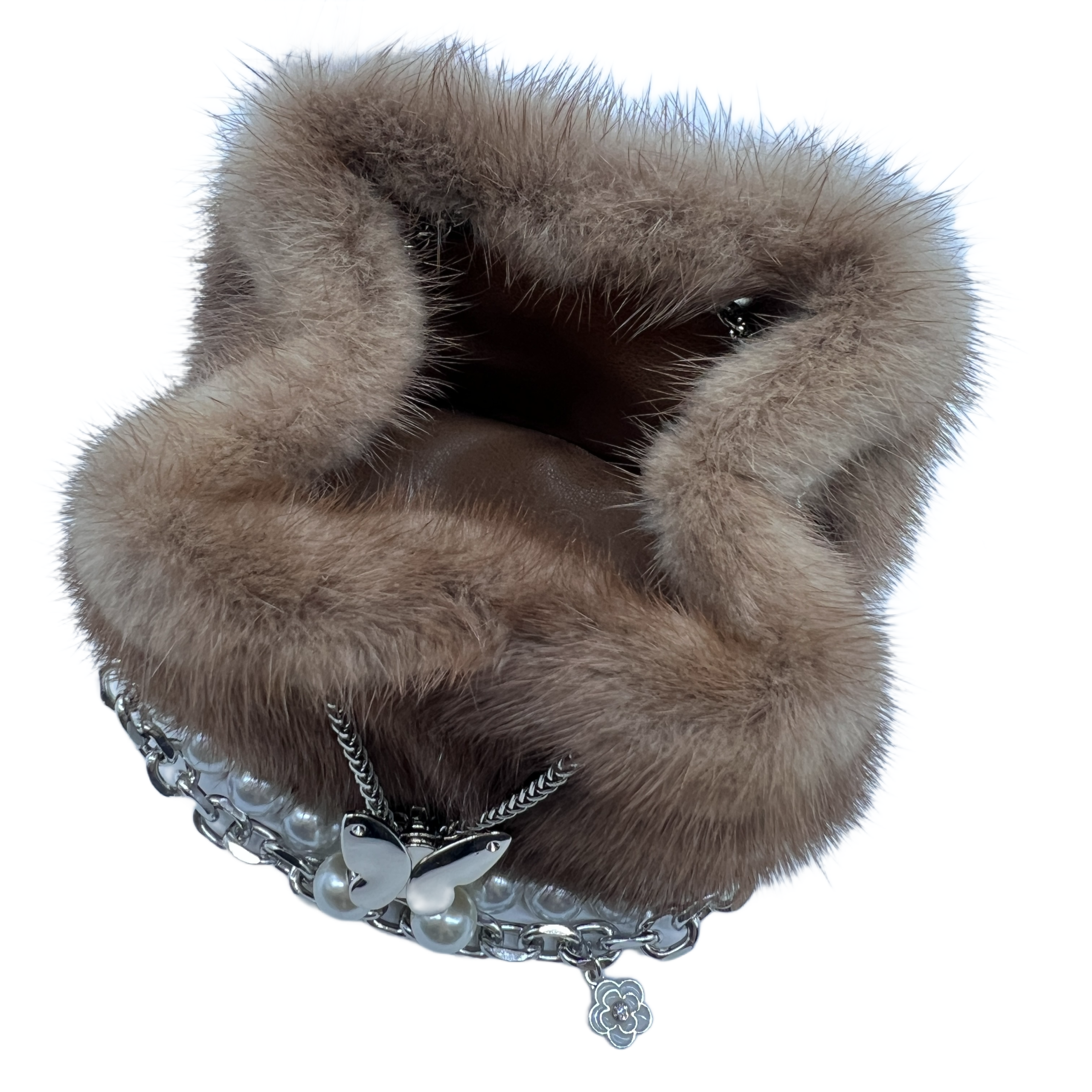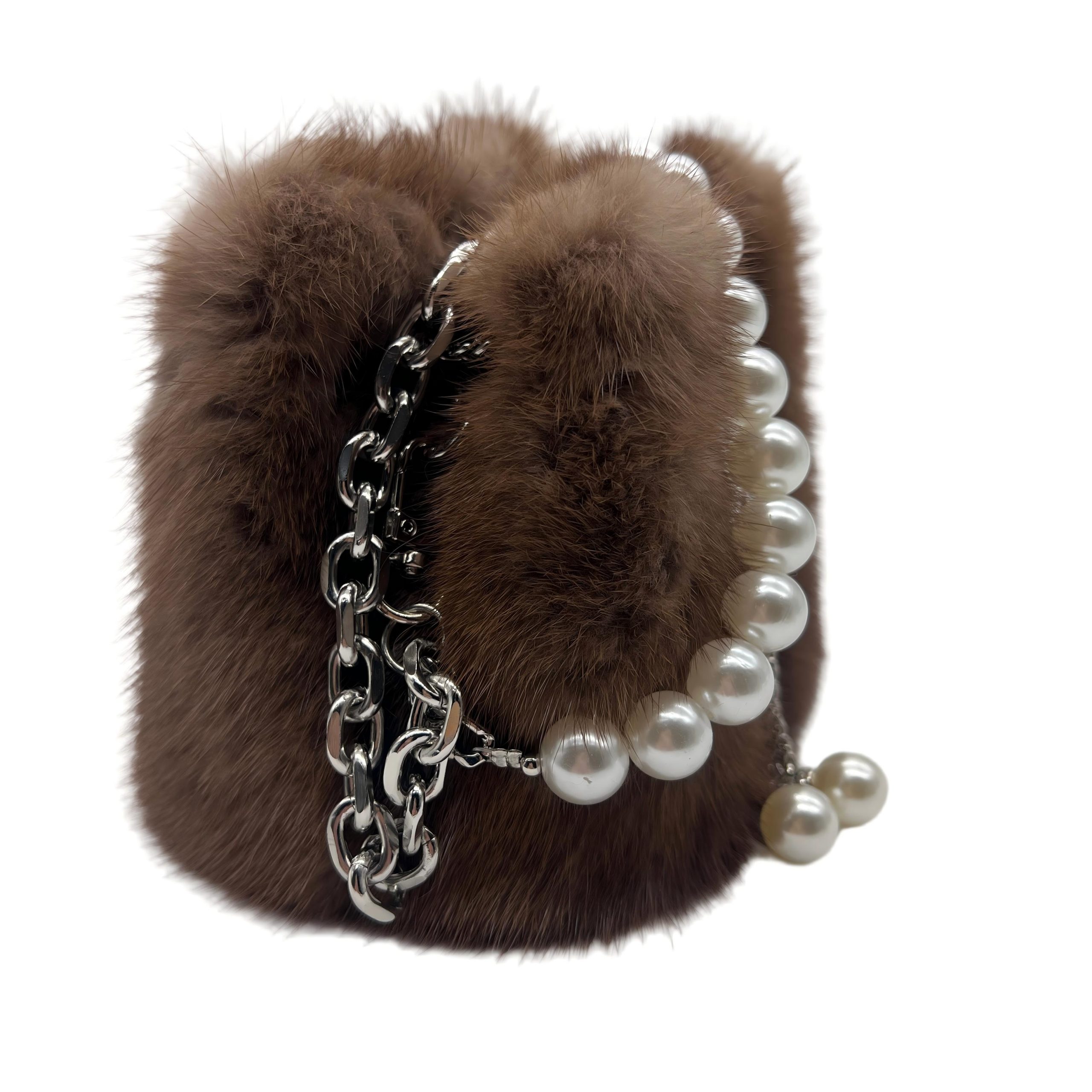 gold brown faux fur and pearl handbagGold-Brown Faux Fur And Pearl Handbag