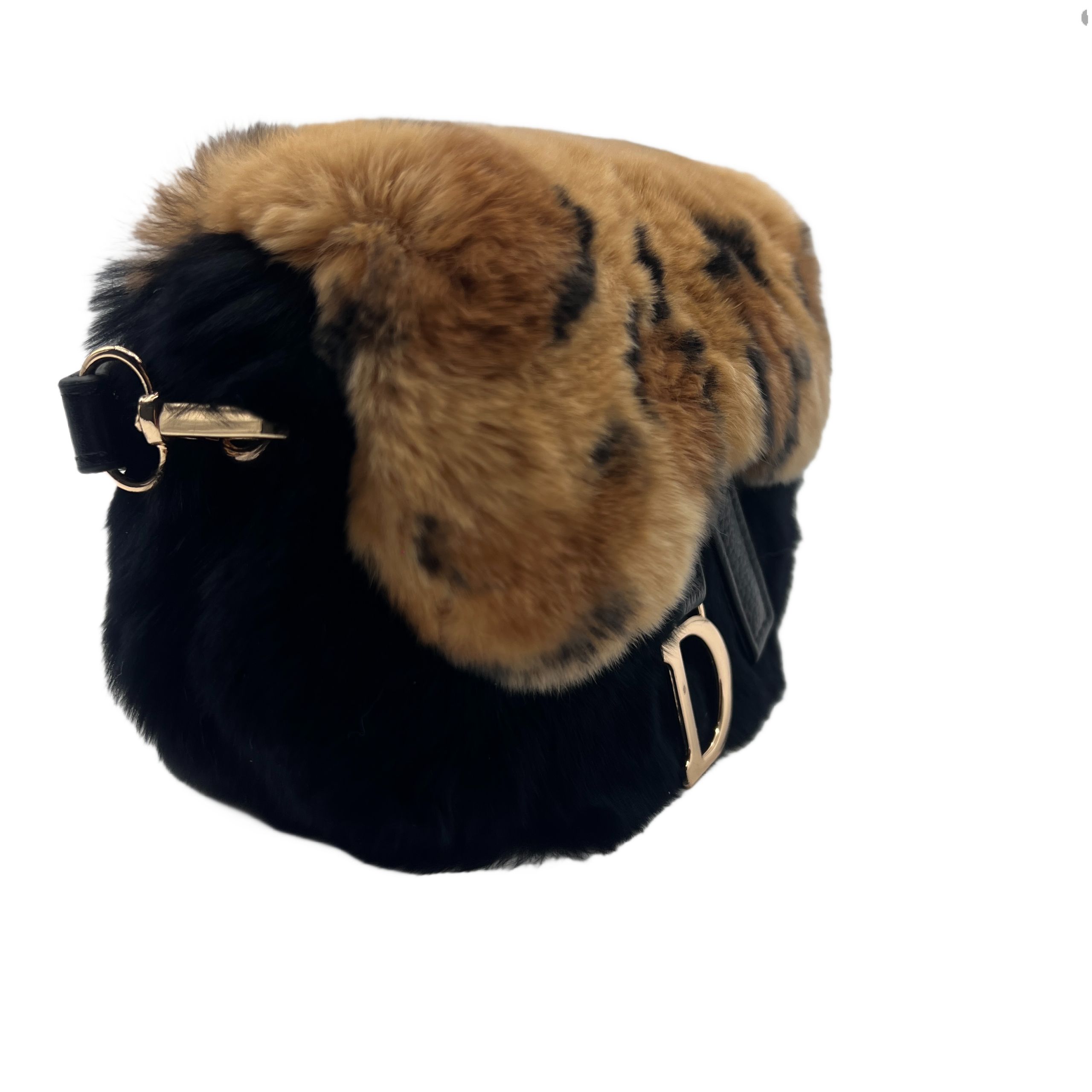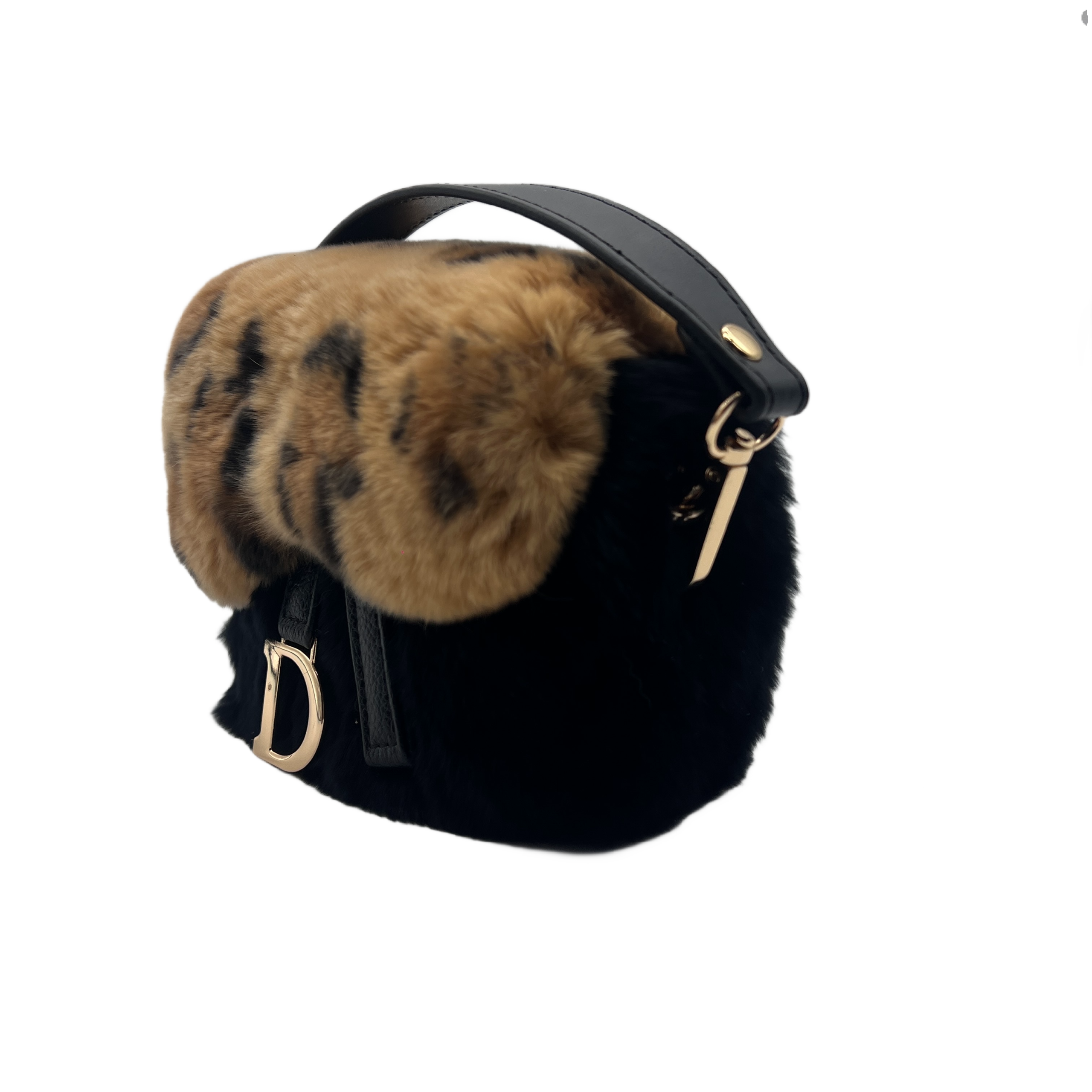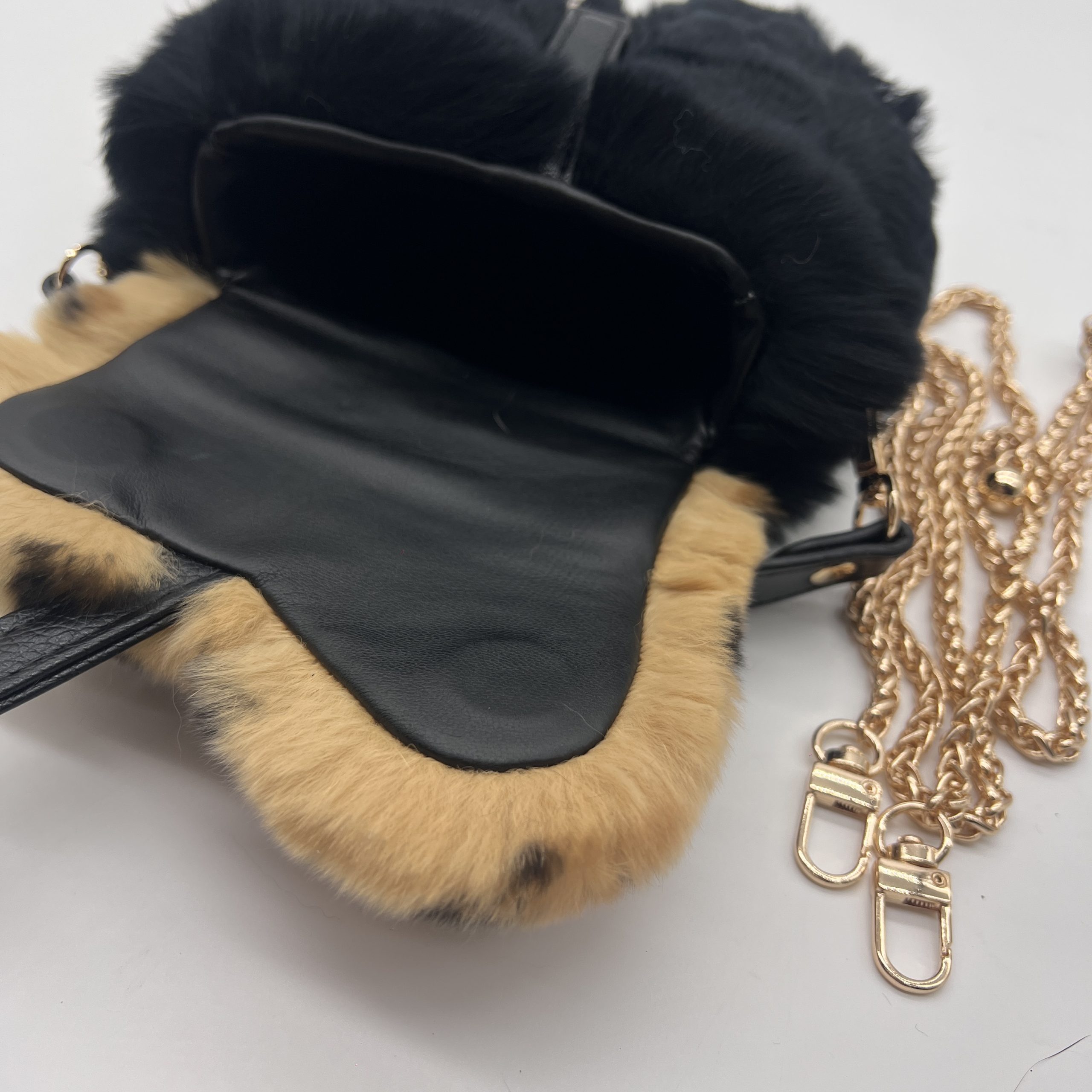 Color: Leopard print + Black Material: Faux fur/ Plush Size: 17*14*10cm Shoulder strap: Yes